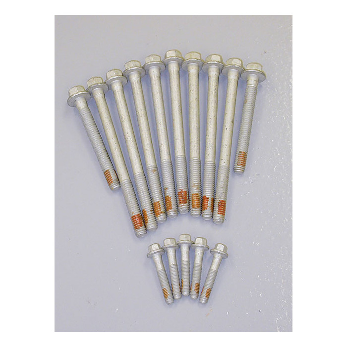Sett med strekkbolter for 1. generasjon design blokker. (1997-2003) Komplett sett med 15 bolter for 1 topp. Skal du bytte begge topper må du ha 2 sett. Rekkefølge, moment og grader er kritisk for korrekt montering av strekkbolter i toppene.